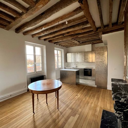 Nous travaillons régulièrement sur des immeubles anciens, c’est même la base de la rénovation, mais ici, l’immeuble date de 1789 ! (sûrement le seul construit cette année là à Versailles.)