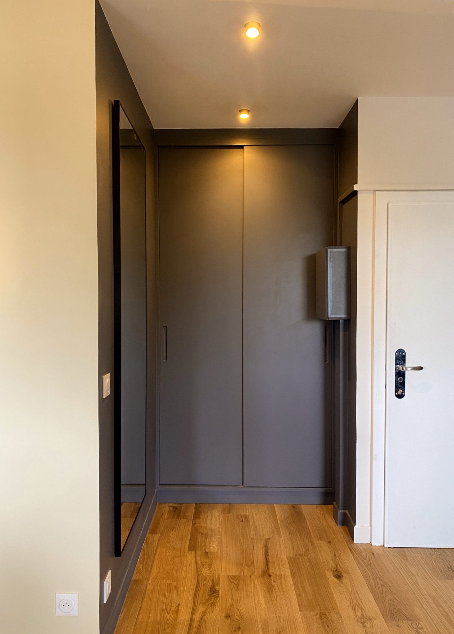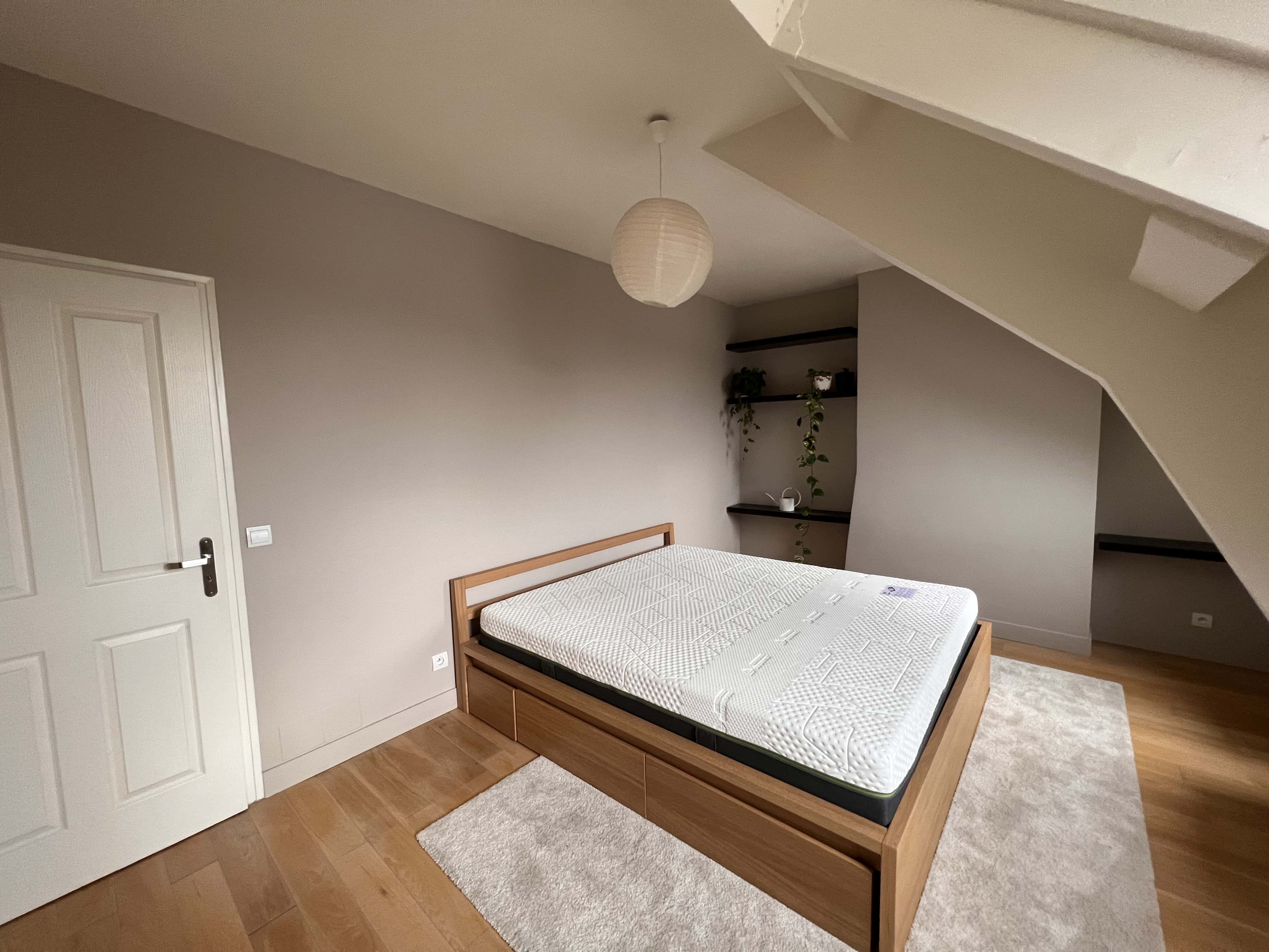 Une chambre douce et légère visuellement. Un espace chaleureux pour accueillir prochainement l’arrivée d’un nouveau membre de la famille.